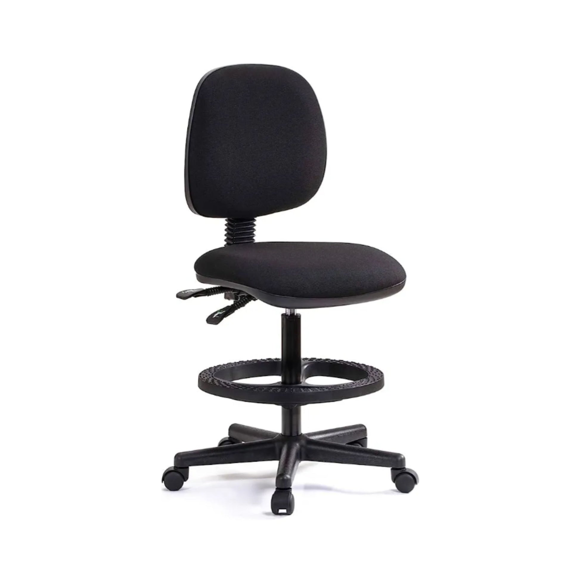 RESISTENCIA 100 KG RESPALDO DE HULE ESPUMA LAMINADO FLEXIBLE DE ALTA RESISTENCIA TAPIZADO EN TELA EN VARIOS COLORESASIENTO DE HULE ESPUMA LAMINADO FLEXIBLE DE ALTA RESISTENCIA Y TAPIZADO EN TELA EN VARIOS COLORES MECANISMO DE DOS PALANCAS PARA AJUSTE DE ALTURA PISTÓN NEUMÁTICO DE CAJERO BASE DE NYLON DE 5 PUNTOS CON ARO DESCANSA PIES DE NYLON